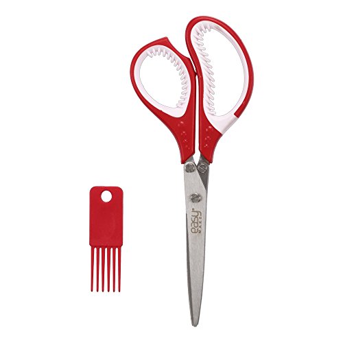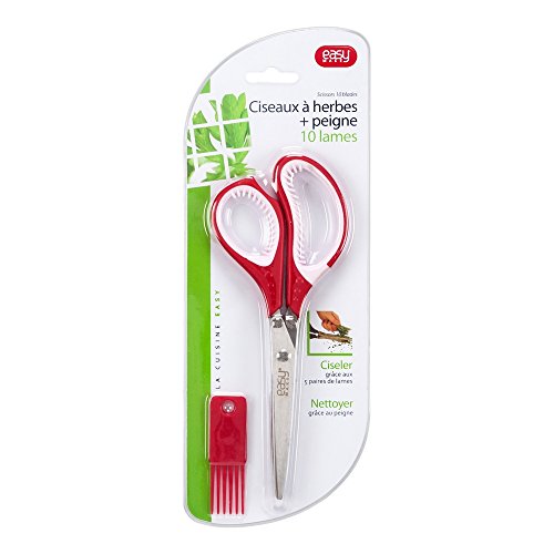 EASY MAKE - Herb Scissors Stainless Steel - Multipurpose Kitchen Shear with 10 Blades and Cover with Cleaning Comb (Red)