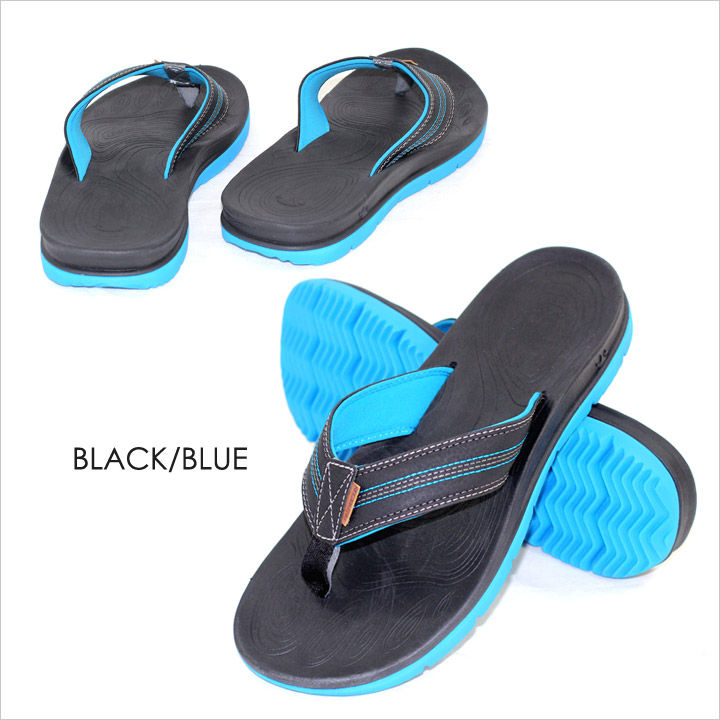 鼻緒にはナイロン素材を使用し、ストラップ外側は水に強い合成皮革を使用し見た目良く、内側はウェットスーツと同じ素材を使用している為、擦れがなく長時間快適に過ごすことが可能。
