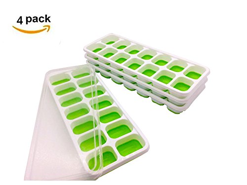 Ice Cube Trays with Lids,Easy-Release Silicone and Flexible 14-Ice Trays with Spill-Resistant Removable Lid,LFGB Certified & BPA Free(4 Pack,Green)