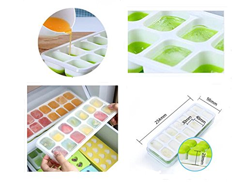 - Standard Size:Contains set of 4 ice cube trays with lid crating a total of 56 ice cubes.Tray size: 10.0* 3.9 * 1.14inch; Cube size: 1.18* 1.57* 0.9inch.
