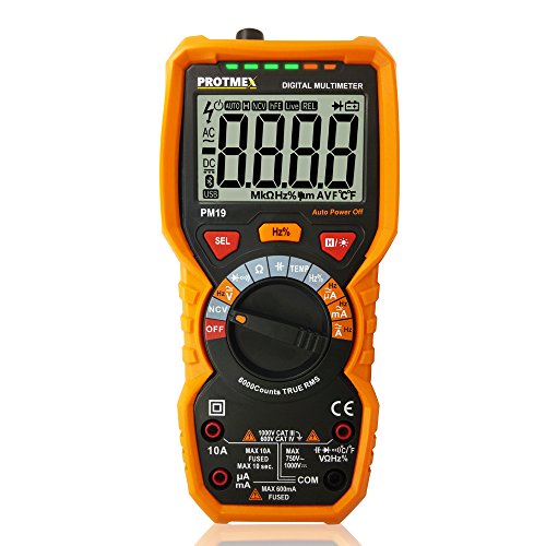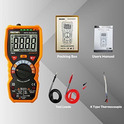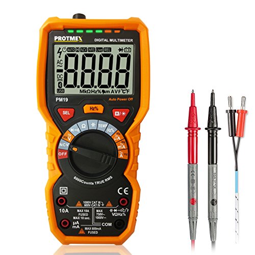 PM19 6000 Counts TRUE RMS Digital Multimeter, Auto-Range DDM with thermocouple, AC Voltage Tester, Voltage Alert, Amp/Ohm/Cap Multi Tester/Diode and Continuity Test HZ with Backlight LCD Display