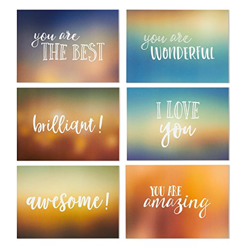 36 Pack Motivational Encouragement Greeting Cards, 6 Handwritten Modern Artistic Style Colorful Designs, Bulk Box Set Variety Assortment, Envelopes Included 5 x 7 Inches