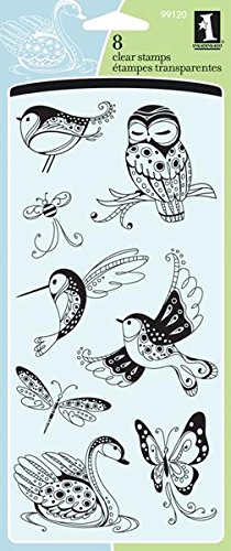 Inkadinkado Clear Stamps, 4 by 8-Inch, Patterned Birds and Bugs