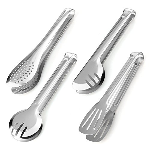 - Heavy Duty Material: Swify Serving Tongs Set are constructed from high quality stainless steel, durable and safety, smooth edge will no scratch your hand. Come with 4 pieces different shapes 9 inch food tongs