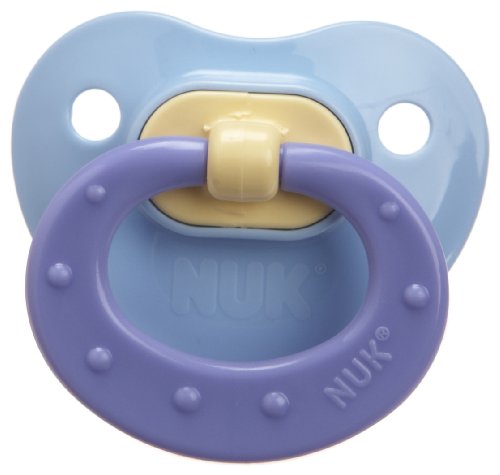 -. Binding : Baby Product -. Brand : NUK -. Feature : NUK Orthodontic shape nipple soothes and calms baby better than our original nipple and its asymmetrical shape helps promote healthy oral development by naturally fitting into your baby's palate / Scoop nipple cavity allows maximum tongue movement, which gently exercises your baby's tongue, palate and jaw and promotes proper teeth alignment by helping your baby avoid thumb-sucking / Heart shaped shield fits perfectly under baby's nose for easy breathing and less irritation / BPA free and made in the USA / Size: 0-6 months -. Label : NUK -. Manufacturer : NUK -. ProductGroup : Baby Product -. ProductTypeName : BABY_PRODUCT -. Publisher : NUK -. Studio : NUK -. Title : NUK Confetti Ducks Orthodontic Silicone Pacifier