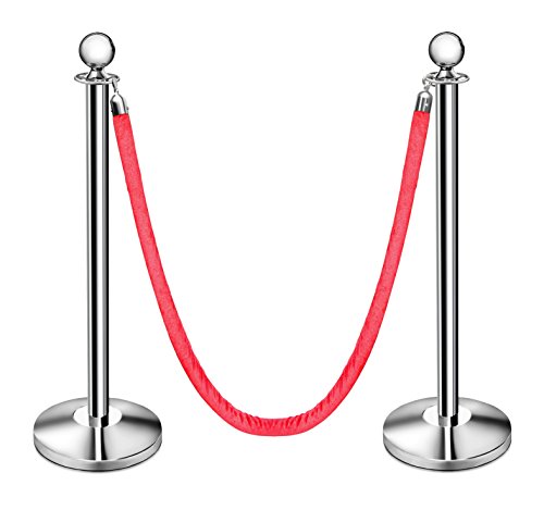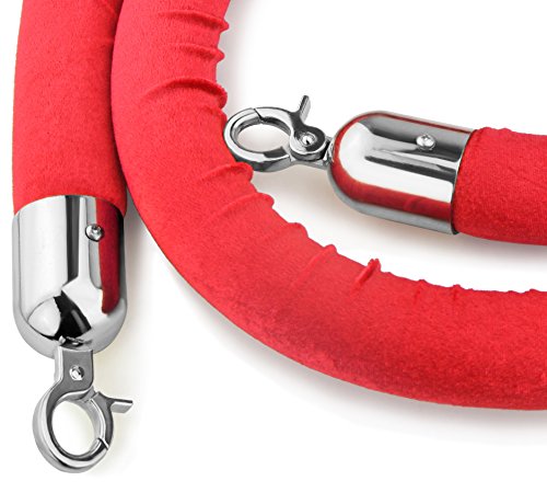 New Star Foodservice 54767 Red Velvet Stanchion Rope with Chrome Plated Hooks , 79.5-Inch, Set of 2