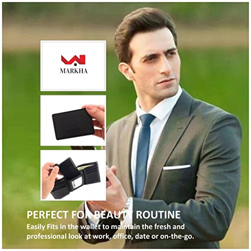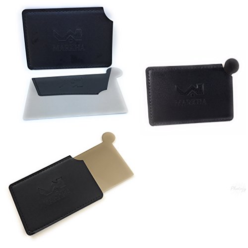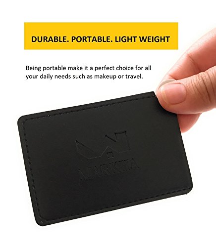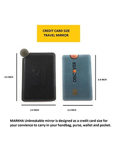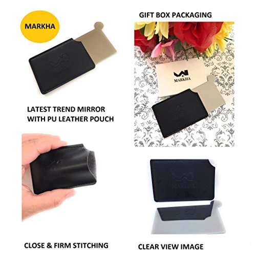 MARKHA Travel Mirror Unbreakable Compact Vanity Makeup Mini Rectangular Handheld Stainless Mirror with PU leather Black Case for Pocket Purse & Wallet for Men/Women