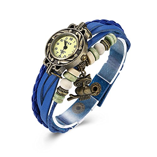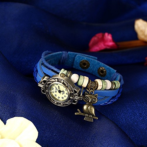 Rockyu 팔찌 워치 맨즈 레이디스 인기 뜨개 컬러 수작업 레트로감 아메리카 올빼미 조동물 청시계 팔찌