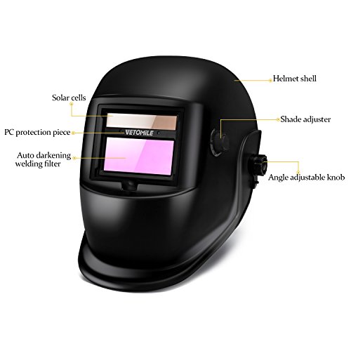 VETOMILE Variable-Shade Auto Darkening Welding Helmet Black, LCD filter ADF ARC TIG MIG Welder Lens Grinding Mask(Pack of 2)