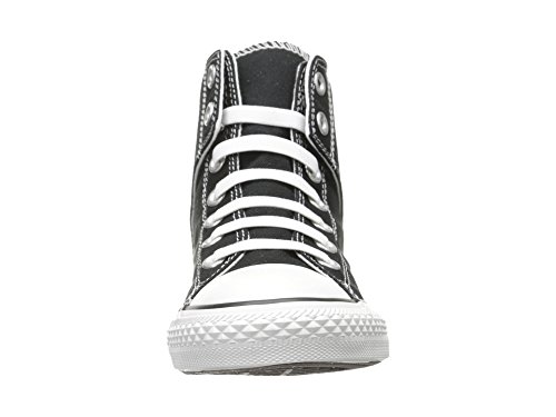-. Binding : Apparel -. Brand : Converse -. Color : Black -. Department : boys -. Feature : Durable canvas upper. Iconic rubber shell toe for durability. / Elasticized lacing system combined with hook-and-loop flaps at the ankle provide a quick and easy on and off. Soft textile lining for comfort. / Lightly padded footbed provides all-day wearability. Vulcanized construction. Durable rubber outsole with the traditional Converse traction pattern. -. Label : Converse -. Manufacturer : Converse -. Model : 630386F -. MPN : 617662F -. PackageQuantity : 1 -. PartNumber : 617662F -. ProductGroup : Shoes -. ProductTypeName : SHOES -. Publisher : Converse -. Size : Little Kid M -. Studio : Converse -. Title : Converse Kid's Chuck Taylor Easy Slip High Fashion Sneaker Shoe - Boys