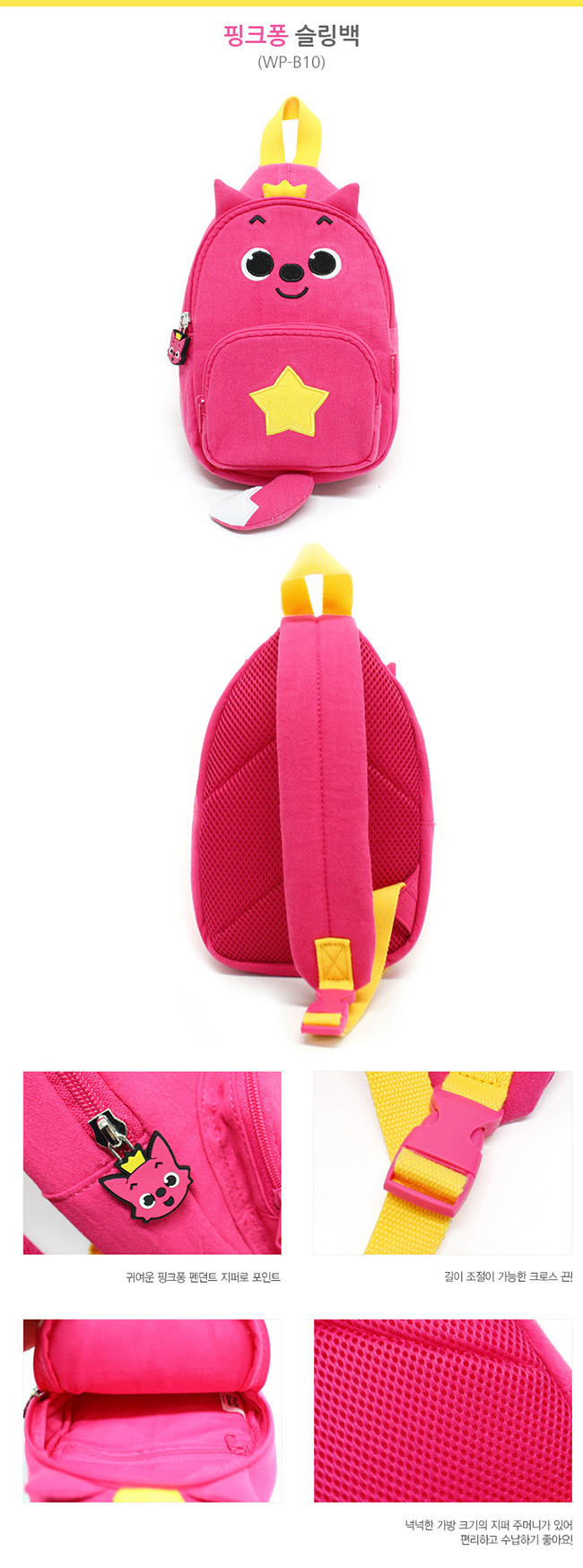 Material: Cotton - 100% cotton, 100% polyester - 100% Size: 17 x 23.5 x 4 Weight: 125.9g Cross-adjustable length Cute Pink Pendant Zipper There is a zipper pocket with a generous bag size.
