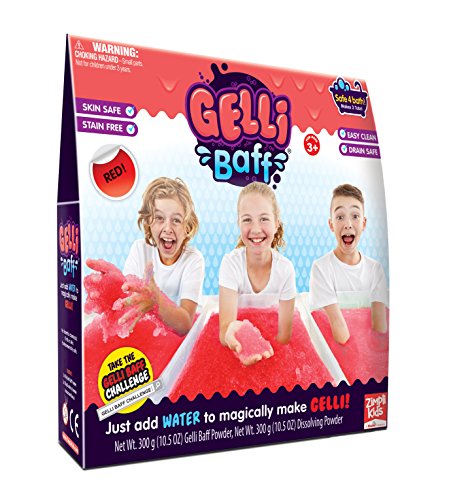 New! Gelli Baff is a totally unique, fun, bath time product that lets you turn water into goo and back again! by adding Gelli Baff powder to water, you create a thick colorful goo. By simply adding a second ‘dissolver’ powder, the goo turns back to colored water to be drained away safely and easily. Red Gelli Baff turns ordinary bath water into a red lava blast adventure and then back to liquid. Turns water into goo and back again! this pack will work for 2 baths.Feature