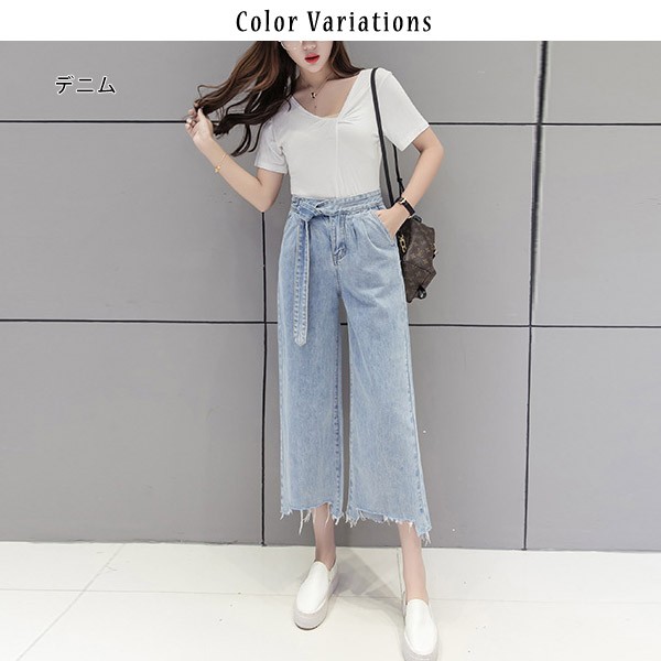 | 商品説明 | トレンドのカットオフデザインが今年らしいデニムワイドパンツ! ウエストマーク×カットオフデニムで一気に旬顔に☆ |