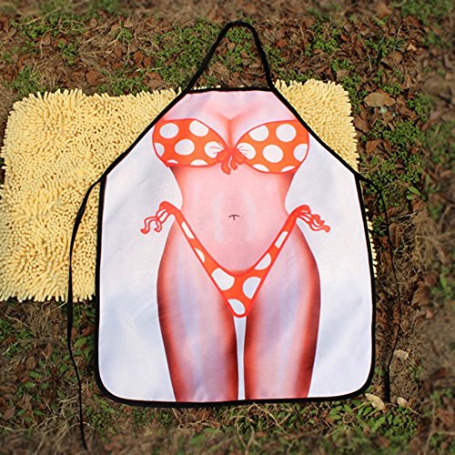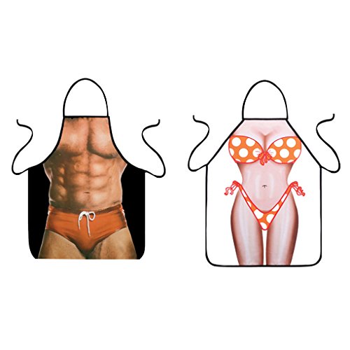 VIPbuy Set of 2 Pcs Naked Man & Bikini Girl Pattern Aprons , Funny Sexy Kitchen Aprons for Couples Novelty Gifts
