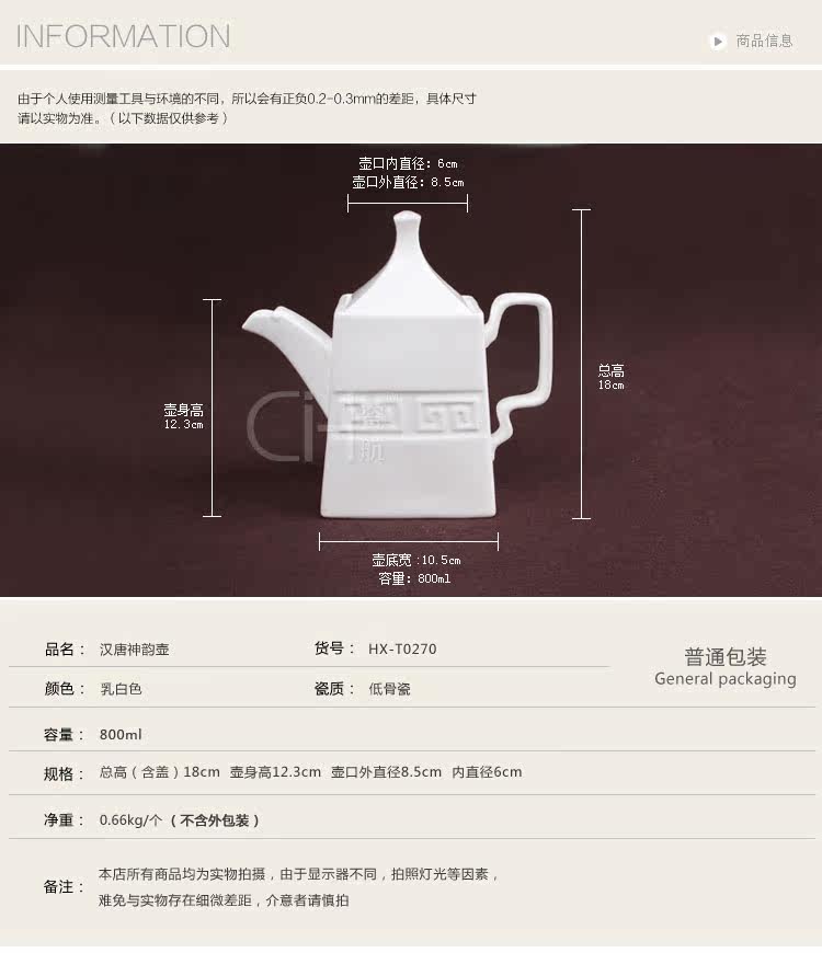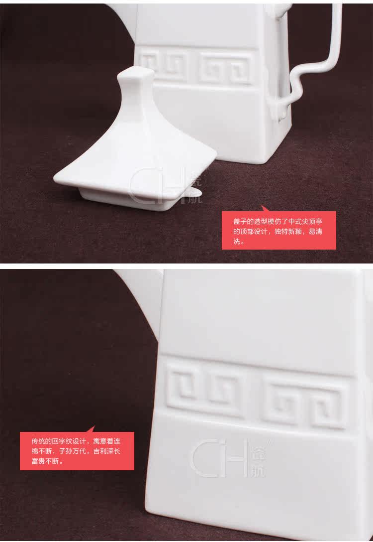 瓷航汉唐神韵壶大号咖啡壶创意陶瓷茶具中式高档骨瓷茶壶800ml