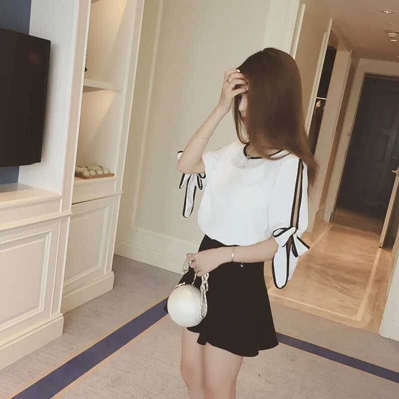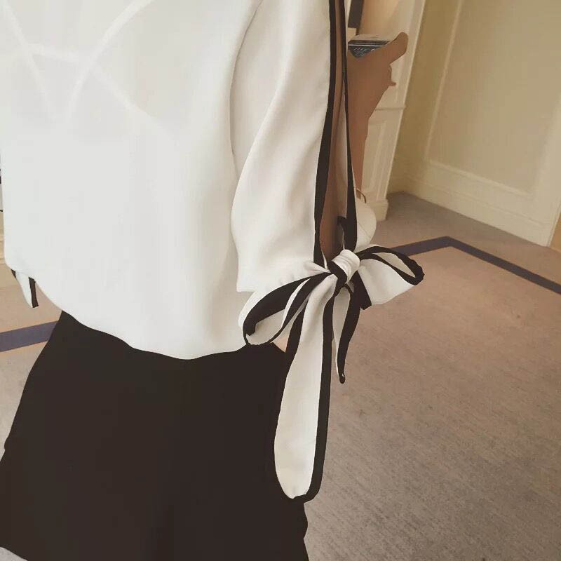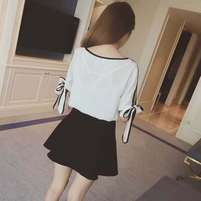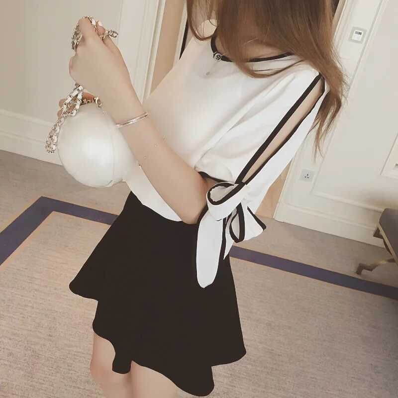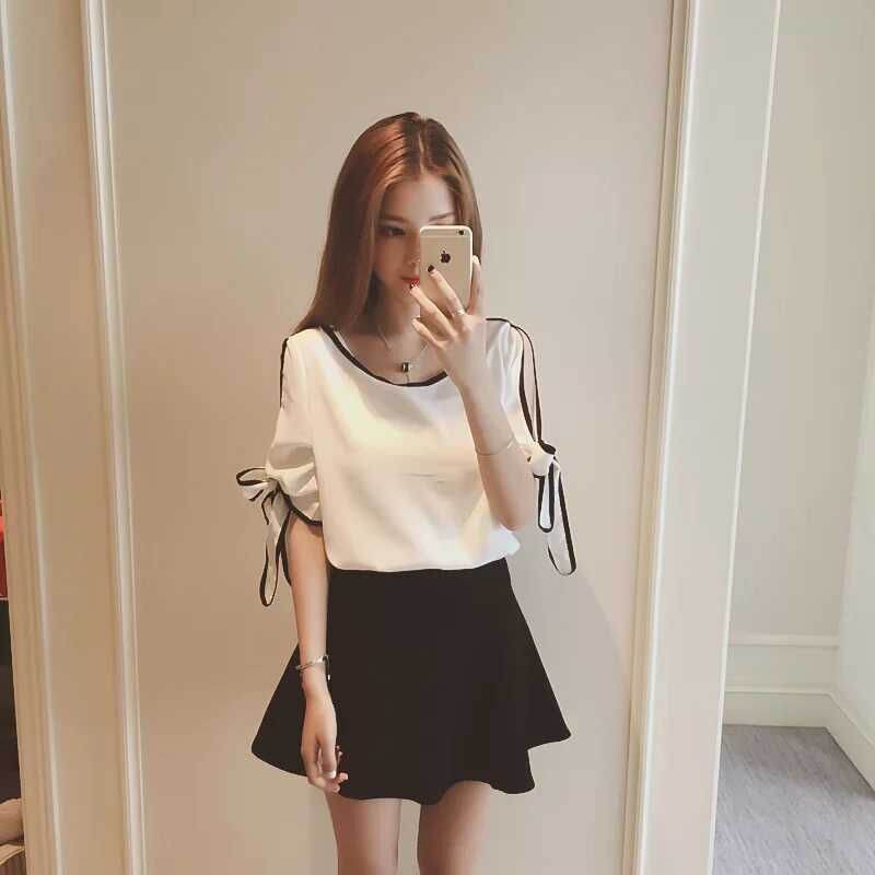 【入荷後営業日2,3日以内出荷予定 通関待ちや不良により出荷遅くなる場合はメールにてご連絡いたします。メール受信設定によっては正常に受信されない場合はございますので、 弊社からのメールを予め受信頂くようご設定くださいませ。】 トップス シャツ ブラウス 可愛い 黒白配色 レディス レディース 春 新作 2018肩出しリボン付きシフォンブラウス伸縮性なし◆サイズ:着丈55肩幅38袖丈25胸囲86◆素材:ポリエステル