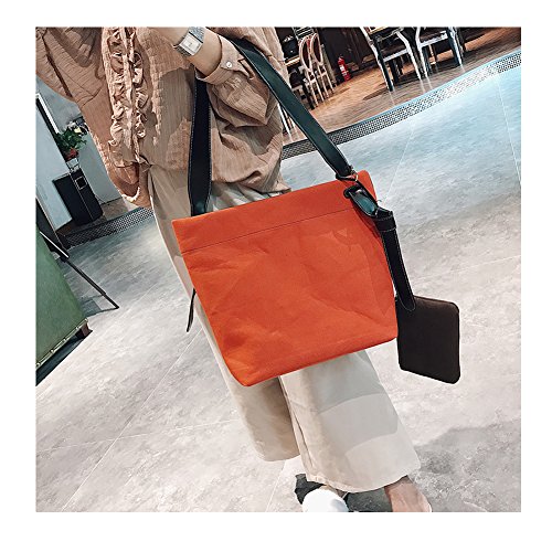 -. Title : Retro Canvas Tote Bag with Inner Pocket, Shoulder Bag or Top Handle Bag (Orange and Brown)