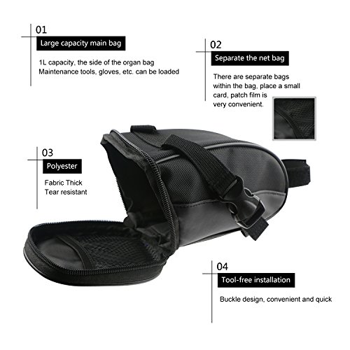 Studio : Lcclink Publisher : Lcclink Binding : Sports Product Description Features: - An aerodynamic wedge shape that fits neatly under your bike’s seat - A handy strap, complete with adjustable plastic buckle, that allows you to attach your pack securely to your bicycle without using any extra cords, ties or other equipment - Suitable for all types of saddles - The tail lights, can be placed in the rear bag, offer you a double protection Perfect For Carrying: - Suitable for packing key, small purse, cell phones, money or ID card, etc - High-energy snacks for your latest trail ride or training run - A small emergency kit that follows you throughout your daily ride 0