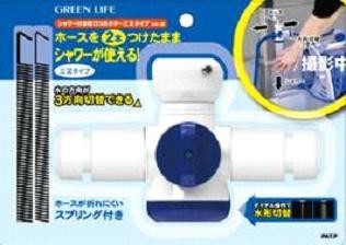 1台3役、ホース2本つけたままでシャワーも使える多目的蛇口コネクターです。ホースが折れにくいスプリング2本付きです。 |