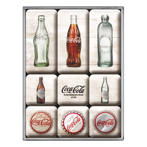 Coca Cola Bottle / Cap History set of 9 Mini Fridge Magnets in box (na)