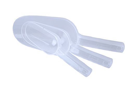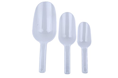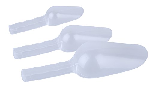 ICE SCOOP- CLEAR HARD PLASTIC ICE SHOVEL DRY GOODS SCOOP CANDY SCOOP - 3 PIECE SET - SML 8.5" MED 10.25" LRG 12"