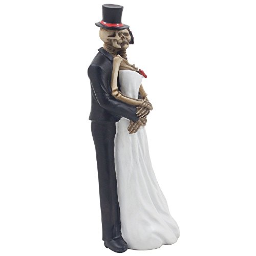 This spooky skeleton bride and groom wedding couple statue is sure to delight and spook all of your guests as they stand in a loving embrace from beyond the grave. - See full description below.