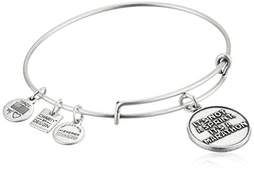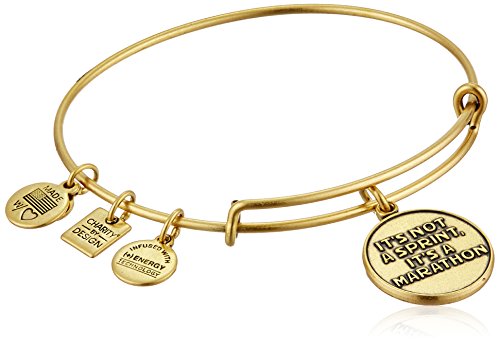 Expandable gold-tone bracelet featuring "It's not a sprint, it's a marathon" charm and three additional stamped Alex and Ani charms