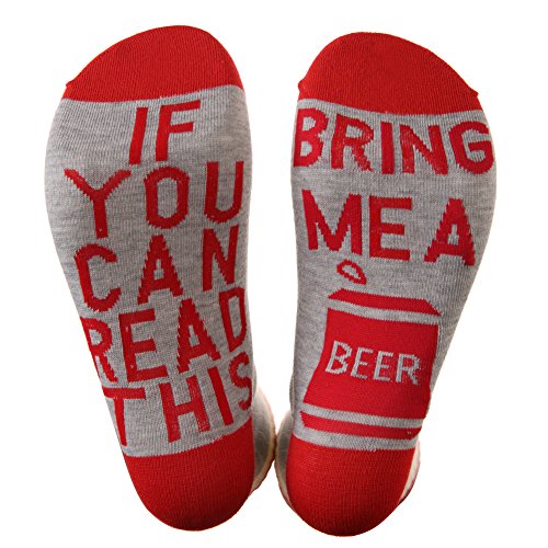 -. Binding : Apparel -. Brand : MIUBEAR -. Department : mens -. Feature : SIZE: Free size. Suitable for Men / Women US Size 6-12. / These stylish and comfortable socks read 'If You Can Read This' on one and with a message on the other Novelty socks that will make your friends giggle, here you go! / FUNNY GIFT - Perfect gift for yourself and for all sorts of occasions: holidays, anniversaries, birthdays you name it! This pair can be used as sport socks or funny socks. Pop these on when going to any social event. This would be a great birthday gift, party favors, white elephant, secret Santa, nana gifts, grandpa gifts, best friend gifts, Christmas or any other. Essential for the wine enthusiast / Material: cotton blend, lightweight, thick enough, breathable, color not easy to fade, soft and comfortable. / Perfect for a Mother's or Father's Day present or just a special birthday! -. IsAdultProduct : 0 -. ProductGroup : Apparel -. ProductTypeName : SOCKSHOSIERY -. Size : Medium -. Title : MIUBEAR Word Socks For Men Women - IF YOU CAN READ THIS Funny Saying Knitting Word Cotton Crew Wine Coffee Beer Socks