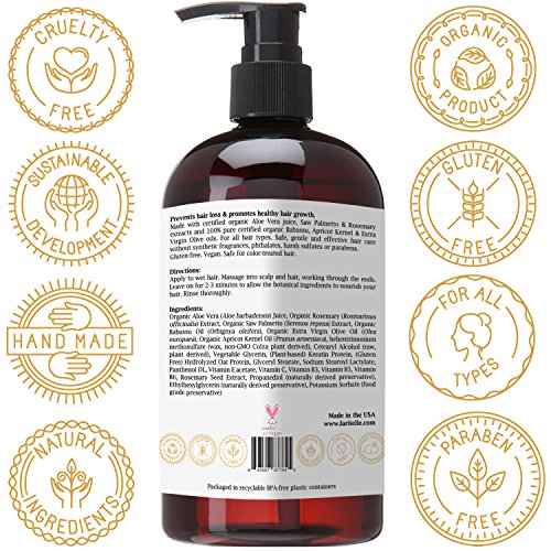 ✿ ORGANIC HAIR CONDITIONER TO PREVENT HAIR LOSS & PROMOTE NEW HEALTHY HAIR GROWTH. Softens hair, nourishes the hair-shaft, rejuvenates hair follicles. Made with certified organic Aloe Vera juice, Saw Palmetto & Rosemary extracts and 100% pure certified organic Babassu, Apricot Kernel & Extra Virgin Olive oils.