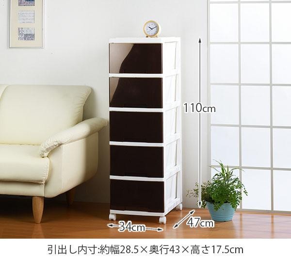 | サイズ | 本体:約幅34×奥行47×高さ110cm(キャスター含む)、引出し内寸:約幅28.5×奥行43×高さ17.5cm 個装サイズ:49×36×55cm |