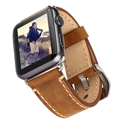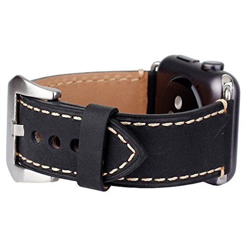 Vintage style on Crazy horse Genuine Leather with Handmade.suitable black color for Apple watch,special Line strips design ,makes your Apple watch awesome; Fit for Apple watch all versions 42mm, about 3.5 ounces