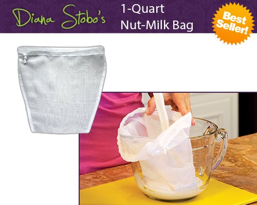 -. Feature : FOOD GRADE, STURDY NYLON MESH: The fine mesh bag strains well and easy to clean for repeated use and has a short drying time. / Perfect 1-QUART SIZE: The 1-Quart size is perfect for sized for travel & kitchen use. Diana's Premium Nut Milk Bag will not stretch or lose shape with repeated use. Perfect size for soups and sauces! / VERSATILE AND MULTI-USE: Diana Stobo's Premium 1-Quart Nut Milk Bags are better than cheese cloth and can be used for making delicious raw nut and seed milks, cold brewing coffee, straining juices for infants, soaking and sprouting at home. / WIDE MOUTH SHAPE: Diana's Premium Nut Milk Bags have a wide mouth to fit over Mason or Ball jars, and the flat bottom and sit comfortably while you work with it. This is a must have tool for your Raw or natural pantry. / FREE RECIPE E-BOOK: Included with each bag is Diana Stobo's Most Amazing Almond Milk Recipe, PLUS a bonus e-book containing 12 nut and seed milk recipes.