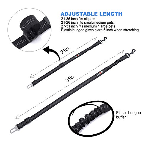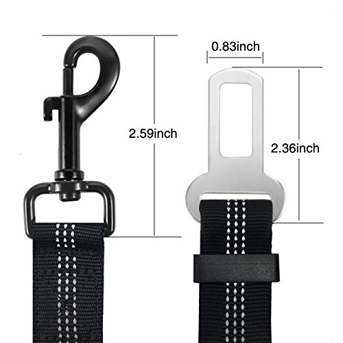 -. Binding : Misc. -. Brand : tobeDRI -. Feature : Dog seat belt helps restrain your pets safe and secure in vehicle while driving without distracting the driver / Adjustable dog seat belt length from 21 inch to 36 inch fits both small and large dogs and allowing more or less freedom for them / Ultra-durable nylon webbing with reflective stitching is also visible in the dark / Elastic bungee buffer could protect your dog from sudden brake / The 0.83 inch seat belt clip fits the most of car buckles -. Label : tobeDRI -. Manufacturer : tobeDRI -. MPN : 0711 -. PackageQuantity : 1 -. PartNumber : 0711 -. ProductGroup : Pet Products -. ProductTypeName : PET_SUPPLIES -. Publisher : tobeDRI -. Studio : tobeDRI -. Title : tobeDRI Reflective Pet Dog Seat Belt Leash Adjustable Cat Safety Leads Vehicle Car Seatbelt Harness with Elastic Nylon Bungee Buffer