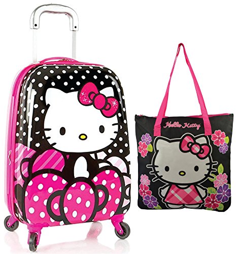 -. Brand : Sanrio -. Color : Black Multi -. Department : travel teenagers kids -. EAN : 0708325403550 -. Feature : Sanrio Hello Kitty Spinner Lage 20" Expandable Carry On with Bonus Beach Tote Bag / Perfect Carry on suitcase with bonus carry on tote bag! / Sanrio Hello kitty Spinner Lage 20" Expandable Carry On is made of ABS/Polycarbonate Composite. Dimensions: 20 x 13 x 9 inches and weighs 5.2 pounds. Expandable for more carrying capacity. / Four spinner wheels spread the weight evenly while allowing for smooth and effortless motion in different terrains. Perfect for little ones! Retractable internal reserved pull handle system designed especially for children. Top handle. / Sanrio Hello Kitty Spinner Rolling Carry On Suitcase makes travel fun for little ones with its classy Hello Kitty Design, will make your trip entertained. -. Model : 16110-6042 -. PackageQuantity : 2 -. ProductGroup : Apparel -. ProductTypeName : LAGE -. Size : Large -. Title : Sanrrio Hello Kitty Spinner Lage 20" Expandable Carry On with Bonus Beach Tote Bag -. UPC : 708325403550