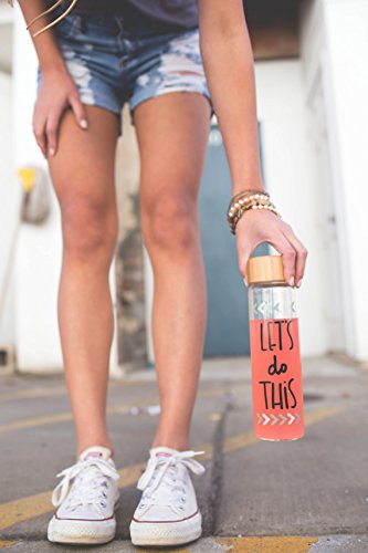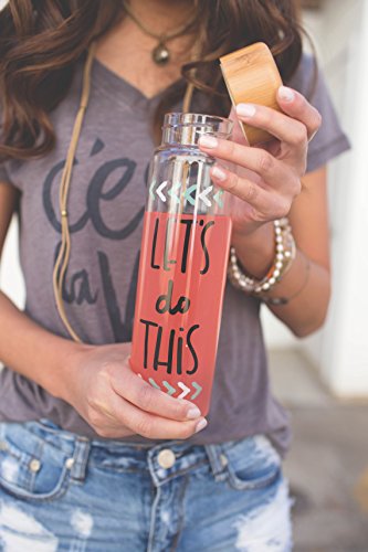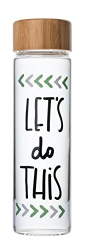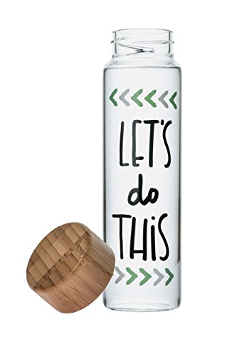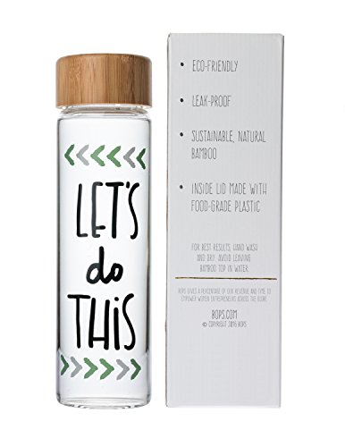 Bops’ 20oz BPA Free, Artisan Glass Water Bottle with Bamboo Lid – “Let's Do This” – Hand-drawn Design, Fun and Unique Water Bottle, great for Travel