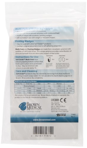 ReleaseDate : 2014-03-05 Studio : Brownmed Publisher : Brownmed Binding : Electronics Product Description Soft Stride is a comprehensive line of flexible foot orthotics that addresses many specific ailments and injuries to feet, heels, ankles, arches and legs. These products help patients avoid or delay surgery, attenuate shock and provide pain relief. Athletes receive comfort during strenuous training and people who stand for long periods benefit from decreased fatigue and pain. The viscoelastic polymer mimics the qualities of soft body tissue. This unique polymer provides redistributes?pressure and attenuates impact. MultiPads are superior for providing anatomical support that can be used as medial/lateral posting orthotic or as neutral heel cup. Can be modified through use of included Posting Wedges to provide varus and valgus buildup. Further modification can be made by placing the Longitudinal Arch Support correctly to provide more support for arch and to lift plantar fascia. Use for conservative treatment of heel pain, heel instability, mild overpronation, plantar fasciitis, bursitis, Achilles tendonitis, fat pad atrophy and related problems such as shin splints. 0