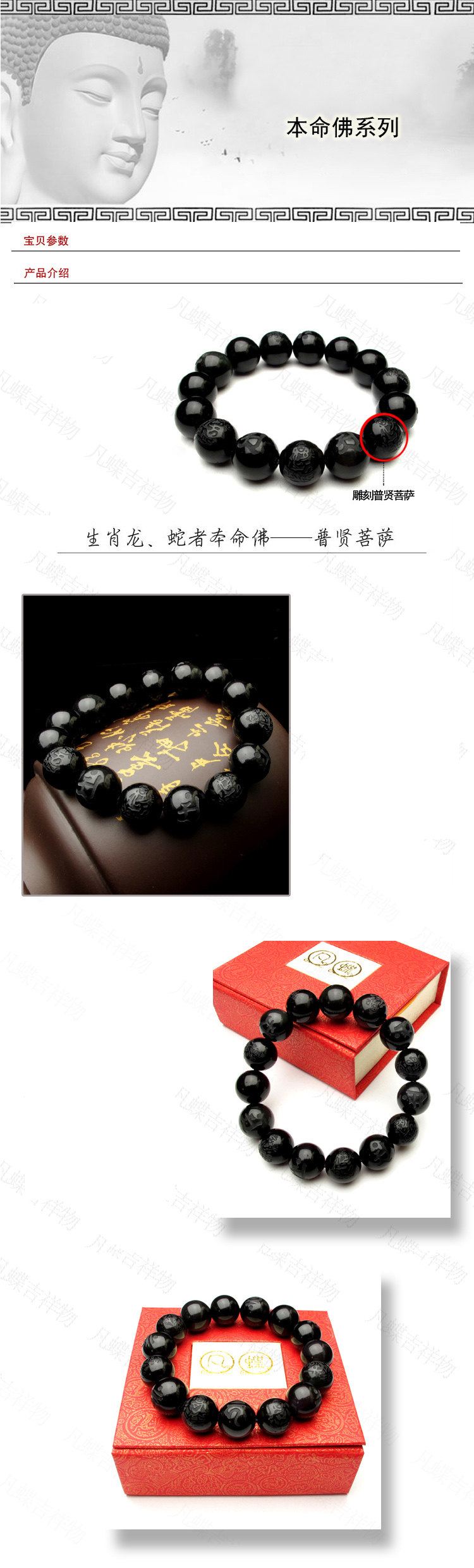 开光狗年天然水晶黑曜石手链普贤菩萨属龙蛇守护神本命佛