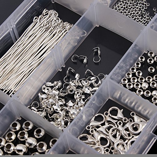 Box include:20 Ear Hook Clasp,20 Lobster Clasp,50 pcs 4 mm Spacer Beads,50 pcs 6mm Spacer Beads,100 pcs 2mm Spacer Beads,50 Eye Head Pins,50 Ball Head Pin,50 ball chain clasp,50 pcs 6mm jump rings,50 pcs 8mm jump rings