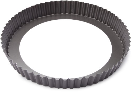 - Round quiche pan with practical removable bottom fluted edges diameter 11 inches non stick coating European design