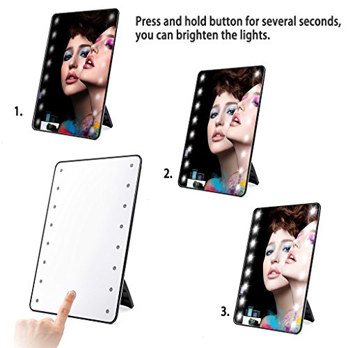 The Angle can be Adjustable. With a bracket on the back so it can stand freely or be held, perfect led makeup mirror to use at home or travel.