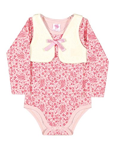 Feature : Baby girls onesie set, floral design, long sleeve / Includes a small, warm, and soft vest / Comes in light pink / Lightweight and suitable for any occasion and season / Machine washable - Made in Brazil