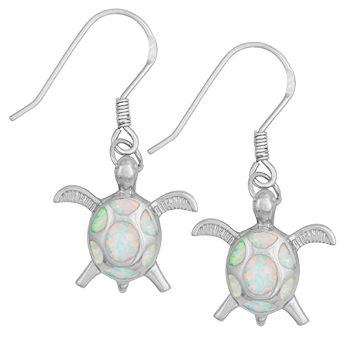 -. Title : Sterling Silver Created Opal Turtle Dangle Earrings
