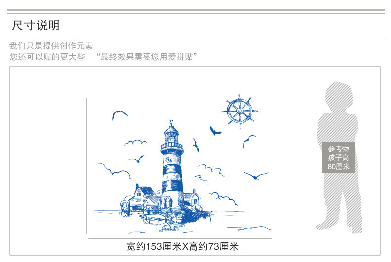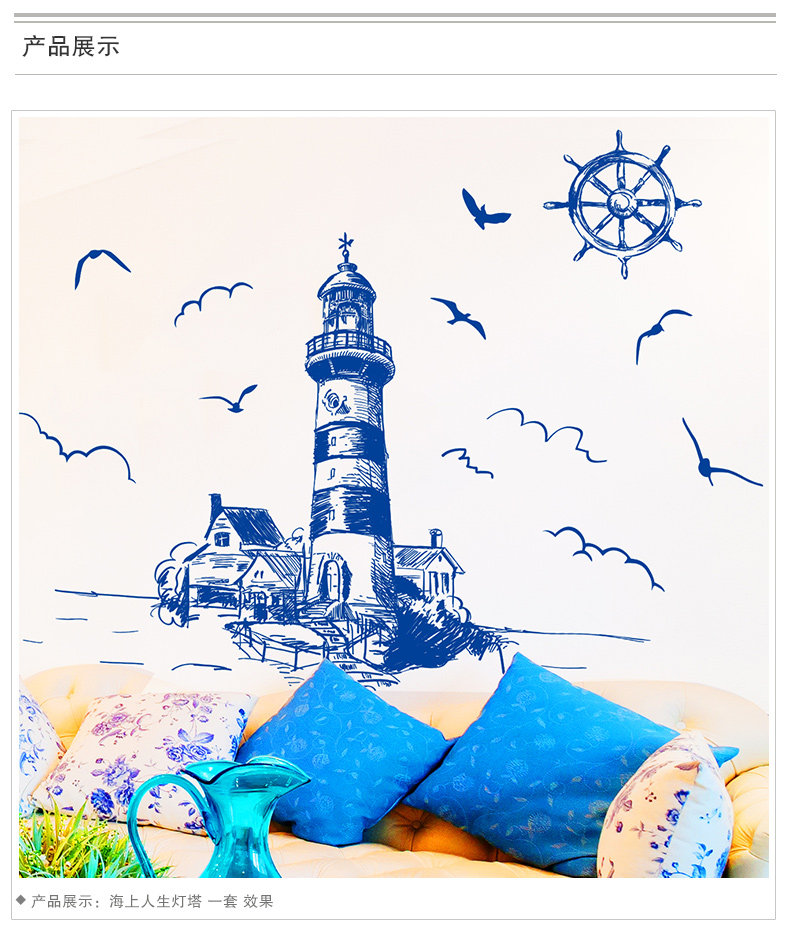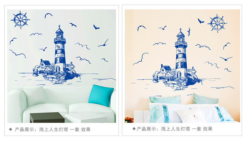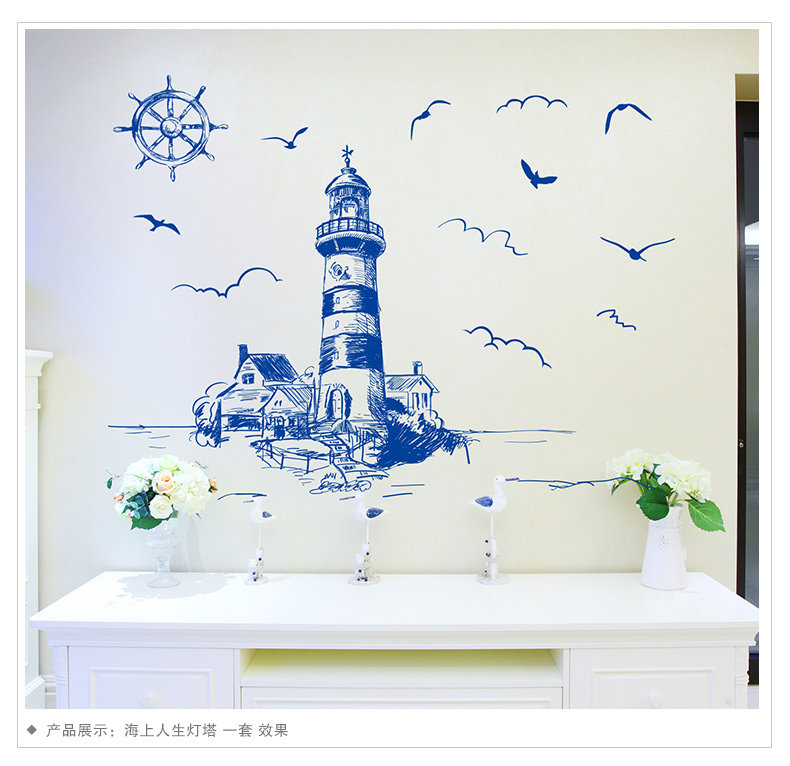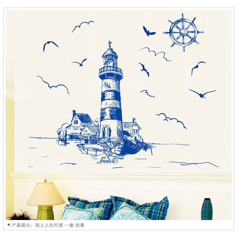 可移除墙贴纸贴画客厅背景墙壁纸装饰欧式地中海海洋风格建筑灯塔