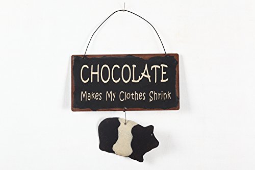YK Decor 7" Metal Wisdom Sign Color Wall Art with Piggy, Diet and Chocolate (Black)