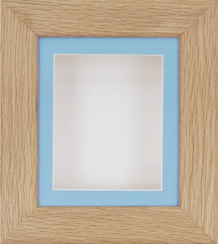 -. Title : BabyRice Deep Box Display Frame for 2D 3D Art Objects Medal Keepsake Baby Casts 1st Bootees Flowers Solid Oak / Blue Mount / White backing