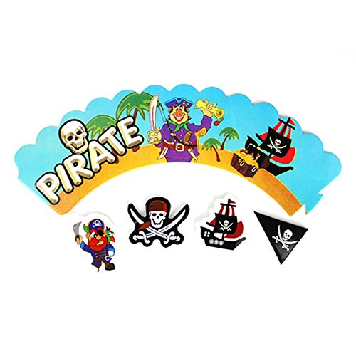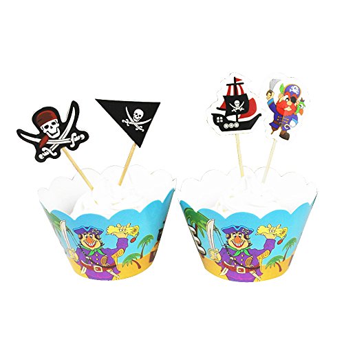 Winrase® Set of 12 Chic Pirate Kids Birthday Party Decoration Paper Cupcake Liner Wrap Wrappers with Toppers (12, Pirate)