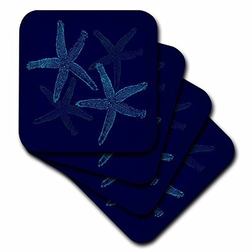 3dRose cst_47824_1 Navy N Aqua Starfish-Soft Coasters, Set of 4