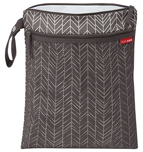 ReleaseDate : 2016-11-22 Studio : Skip Hop Publisher : Skip Hop Binding : Baby Product Product Description Keeps leaks and odors contained. With a handy strap to attach to your stroller, our waterproof bag keeps wet and dry items separate. It has two handy sections for clean or dirty clothes; or use one pocket to keep dirty diapers at bay. Product Features: ?Large zippered pocket for wet items or dirty diapers ?Mesh zippered pocket for dry, clean items ?Waterproof PEVA lining ?Oversized main pocket holds nine to ten cloth diapers ?Sturdy strap unsnaps to attach to stroller or hook ?Machine-washable ?BPA-free, PVC-free, Phthalate-free Warning: Adult use only. Remove discard all packaging materials properly. 0