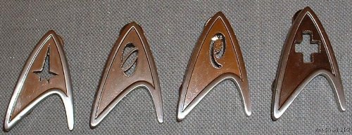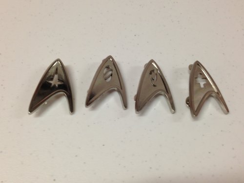 Product Description STAR TREK NEW MOVIE (SET OF 4) CHEST INSIGNIA UNIFORM PINS Brand New Star Trek New Movie Chest Insignia Uniform Pins Metal Pins measure 2 inches tall Set of 4 Command Science Engineering Medical Limited Edition 0