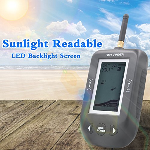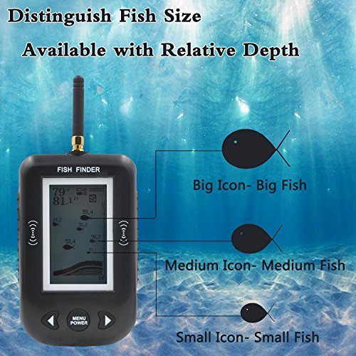 - [Sun-Visible 2.8" Dot Matrix LCD Display] - Enable you to clearly view the monitor under strong sunshine, including Water Depth, Temperature, Fish Location & Size (Big-Moderate-Small), Bottom Contour, Depth Range/Scale, Battery Remaining of the mainframe. And the white LED backlight setup allow you to use it at night or under weak light.